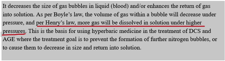 Regarding HBOT therapy, “its primary effect is due to the increased ambient pressure itself.” https://www.ncbi.nlm.nih.gov/books/NBK448104/