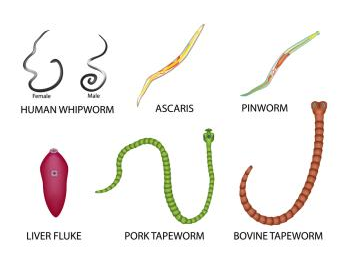 Helminths include unrelated subdivisions or phyla, most commonly nematodes (roundworms), Platyhelminthes (tapeworms, flatworms and flukes), among other helminthic phyla.