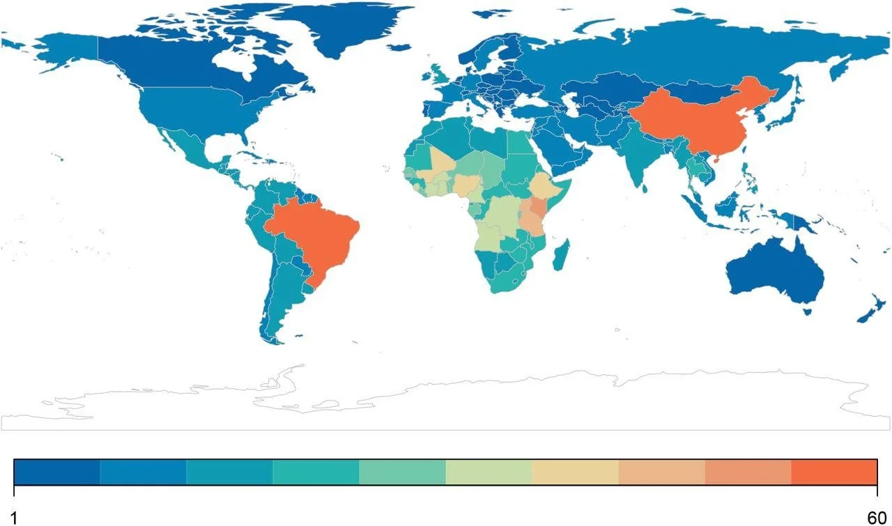 The authors found “Most published spatial research on human helminthiases describes incidence and burden in Sub-Saharan Africa, China and Brazil.” These countries are closer to the equator than the temperate and subarctic countries.