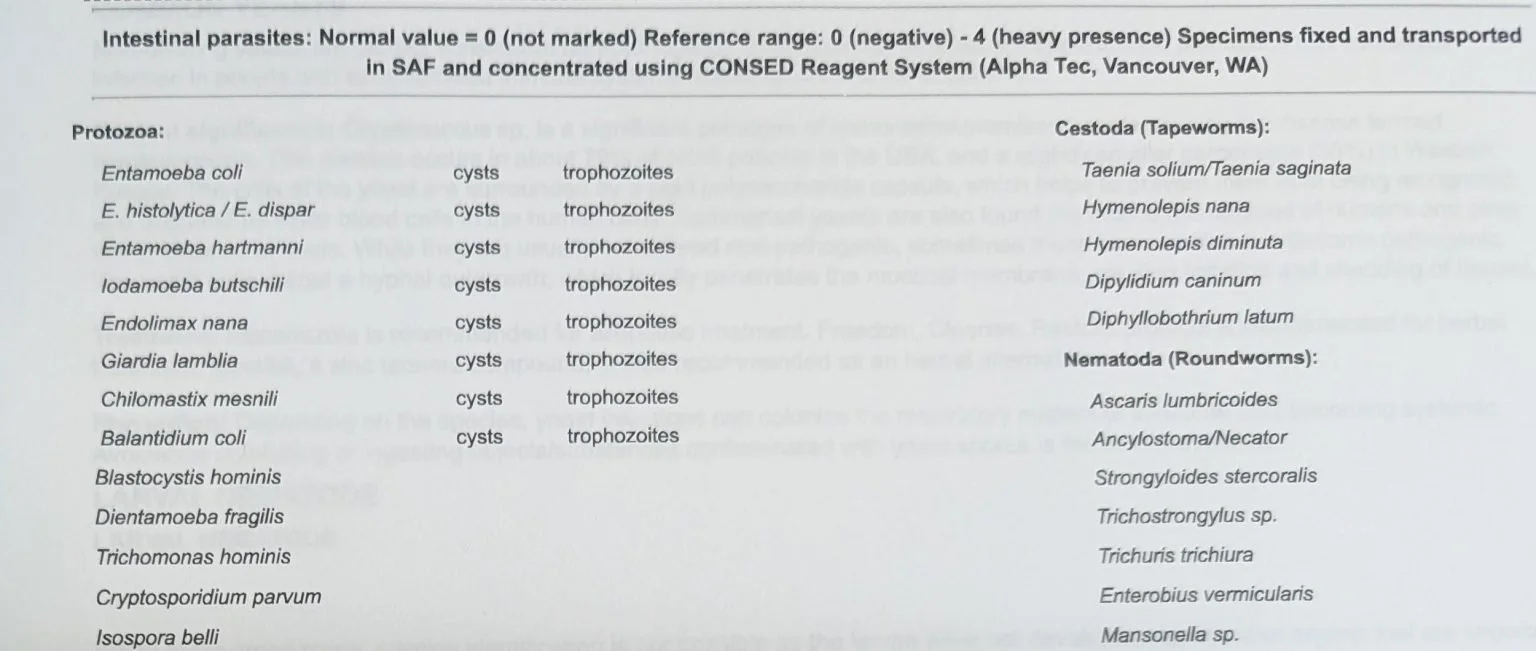 Patients at our clinic have been very interested in parasites after discussing them with others who are interested in parasites, but very few stool tests of patients at our cancer clinic actually show positive results for parasites. We test especially when we encounter the rare patient who actually shows symptoms typical of parasitic infection. This is not at all common in the United States.